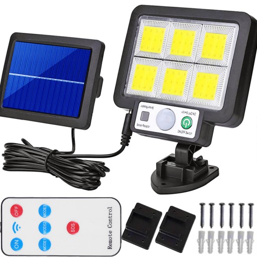Lampa LED COB zewnętrzna solarna z czujnikiem ruchu i czujnikiem zmierzchu + Pilot