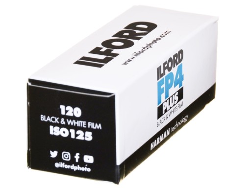 Oferujemy: Ilford FP4 plus 125/120 klasyka, film, tradycyjna emulsja do zdjęć B&W czarno-białych data: marzec 2024 r.