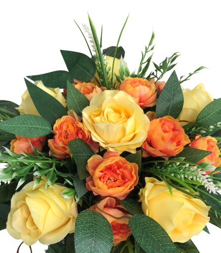 Stroik nagrobny z bukietem to wysokiej jakości sztuczne kwiaty, które wspólnie tworzą niepowtarzalną dekoracje kwiatową nadającą jednocześnie elegancji oraz subtelności.