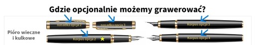 Poniżej miejsca graweru na wszystkich produktach - na tym piórze grawerujemy na nasadce i korpusie: