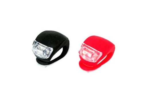Zestaw dwóch lamp ledowych na przód i tył roweru. Zapewniają dobrą widoczność i bezpieczeństwo z dużej odległości. Wykonane z silikonu, odporne na wodę. Wyposażone w dwie diody led emitujące jasne światło (białe i czerwone). Uniwersalne, pasują do każdego roweru, wystarczy owinąć wokół uchwytu kierownicy i zapiąć zatrzask. Dzięki silikonowi bardzo dobrze przylega i nie zmienia swojego położenia podczas jazdy. Lampki można założyć nie tylko na rower, świetnie sprawdzają się również na wózkach dziecięcych, inwalidzkich, kijkach trekingowych czy plecakach.