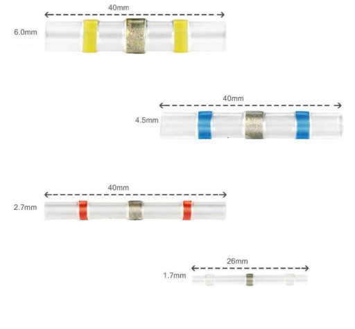 Rozmiar złączek termokurczliwych: