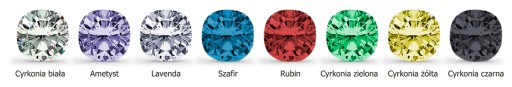 W obrączkach firmy Eminence istnieje możliwość oprawy wielu kolorów kamieni. Oprawiamy tylko kamienie najwyższej jakości firmy Swarovski. Kolorystyka stwarza możliwość kreowania obrączek nieszablonowych i o indywidualnych cechach. Przykładowe kolory znajdują się obok. UWAGA: Nie wszystkie kolory dostępne są standardowo. Jeśli interesuje Państwa określony kolor z poniższej fotografii to bardzo prosimy o zaznaczenie koloru w formularzu dostawy. Jeśli jakiś kolor jest niedostępny w chwili zamówienia to podamy inne możliwe do oprawy kolory.