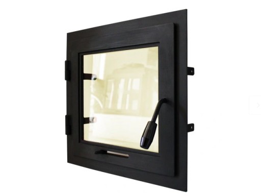 Ten model polecamy szczególnie osobą posiadającym mały otwór w palenisku lub takim którym zależy na jak największej szybie. Kołnierz stanowi integralną część konstrukcyjną ramy drzwiczek, dzięki czemu konstrukcja została przeniesiona częściowo na zewnątrz otworu. Taki zabieg pozwolił nam stworzyć model, w którym otwór paleniska po otwarciu drzwiczek pomniejszy się tylko o 1 cm na każdym wymiarze. Dzięki temu osiągamy możliwie maksymalne światło otworu i dużą szybę. Wygląda to niezwykle efektownie i ułatwia wsadzanie większych polan drewna do paleniska.