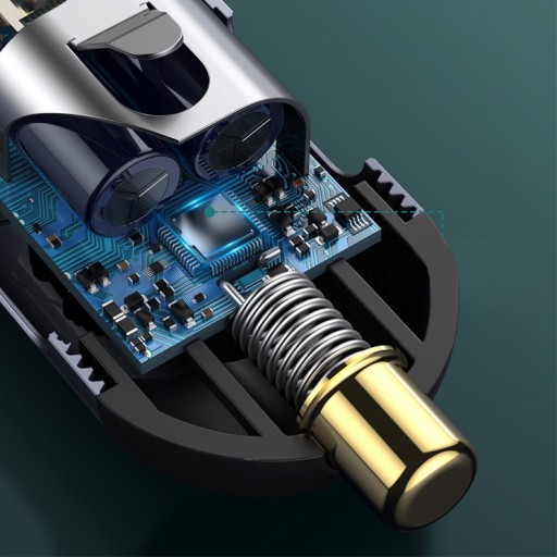 Ładowarka samochodowa z rozdzielaczem Baseus. Całość prezentuje się smukło i stylowo dzięki kompaktowym rozmiarom, a rozgałęziacz pozwoli na ładowanie urządzeń, nawet po stronie pasażera siedzącego z tyłu pojazdu.