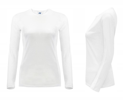- Klasyczny T-shirt damski z długim rękawem bez ściągaczy.