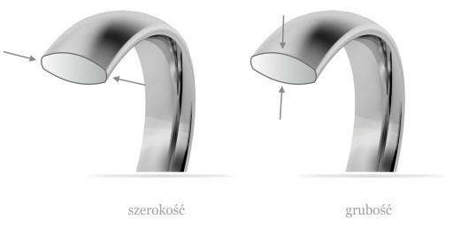 W każdym wzorze wykonujemy standardowo profil zaokrąglony od wewnątrz tzw. komfortowe wyprofilowanie lub profil soczewkowy. Komfortowe wyprofilowanie zapewnia komfort codziennego użytkowania, powoduje lepsze dotlenienie paluszka i ułatwia ściąganie obrączki. Ponadto każda obrączka posiada delikatnie zaokrąglone krawędzie.