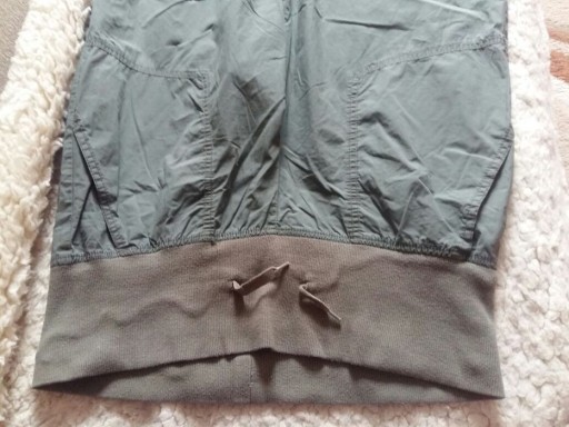 Spodnie ciążowe firmy H&M . Rozmiar z metki m ale moim zdaniem to rozmiar 44 /46 . Kolor khaki . Z miekkim i rozciągliwym pasem na brzuszek. Wiazane pod brzuszkiem . Z kieszonkami . Szerokie nogawki . Na dole sciagane na taśmy. Spodniew stanie idealnym . Może komuś się przydadzą.. szerokość w pasie 49 cm x 2 szerokość w biodrach 61 cm x 2 dlugość calkowita spodni 107 cm . Zapraszam