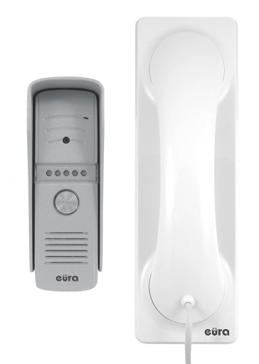 Wideodomofon „EURA”VDP-50A3 PROXIMA BIAŁY z serii EURA CONNECT to jednorodzinny zestaw składający się z unifonu „EURA”ADA-50A3 „PROXIMA” w kolorze białym i kasety zewnętrznej „EURA” VDA-79A3. Ten czterożyłowy wideodomofon jest rozwiązaniem, które łączy w sobie zdalną obsługę strefy wejścia na posesję z klasycznym bramofonem video.