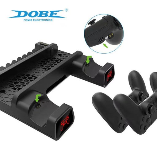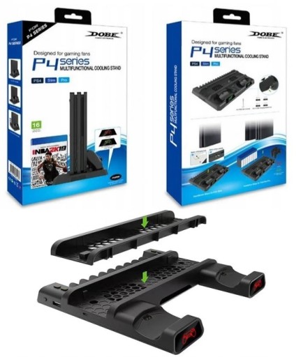 Podstawka chłodząca 3w1 do PlayStation 4 , SLIM i PRO ze stacją dokującą do 2 padów i stojakiem na 10 gier firmy DOBE.