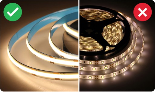 ➕ Większa gęstość mocy - Taśmy LED COB mogą generować znacznie więcej światła na jednostkę powierzchni, co sprawia, że są wydajniejsze.