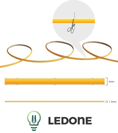 TAŚMA LED COB 12V 12w/m NEON CIEPŁA 1m LINIA