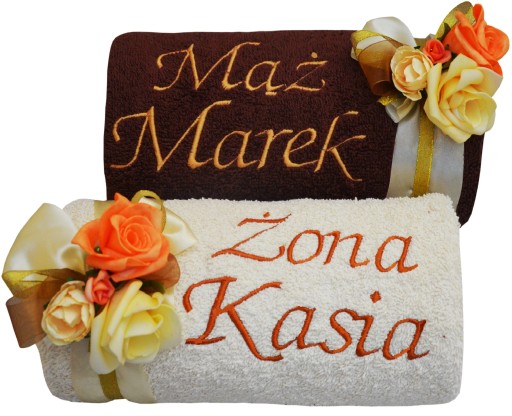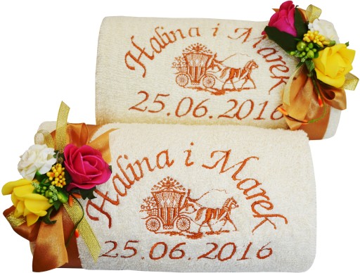 - hafty na 2 ręcznikach - wykonamy Twój haft złożony z maksymalnie 5-6 wyrazów lub 3-4 wyrazów i grafiki.