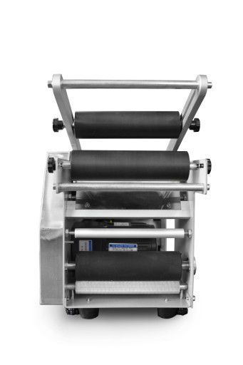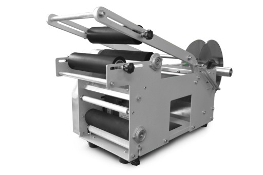 Urządzenie służy do naklejania etykiet, na opakowania o kształcie cylindrycznym np. butelki szklane, słoiki, buteleki PET, HDPE, puszki itp. Samoprzylepne etykiety umieszczane są z precyzją ± 0,5 mm.