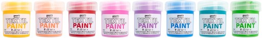 Farby TEXTIL PAINT występują w zestawach i na sztuki w dwóch wariantach: