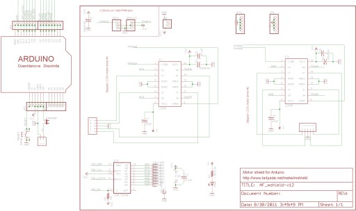 Shield - czyli nakładka na Arduino ze sterownikami L293D do sterowania silników dużej mocy. Umożliwia sterowanie czterema silnikami DC lub dwoma dowolnymi silnikami krokowymi.