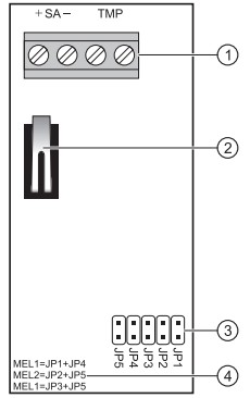 3 - kołki do wyboru typu sygnalizacji dźwiękowej.