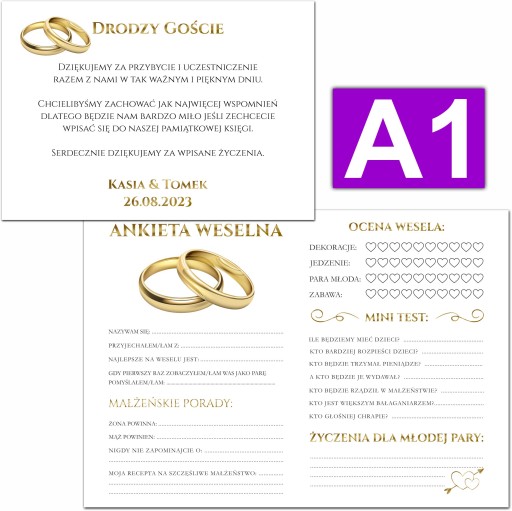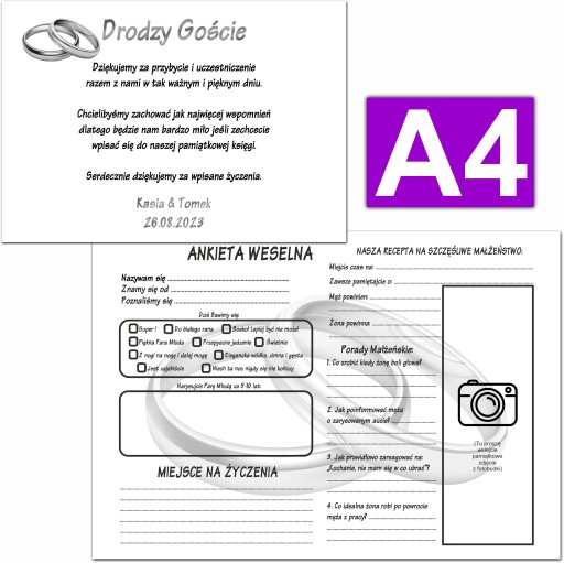 - druk ankiety na białym papierze 250g - do wyboru 6 wzorów ankiet