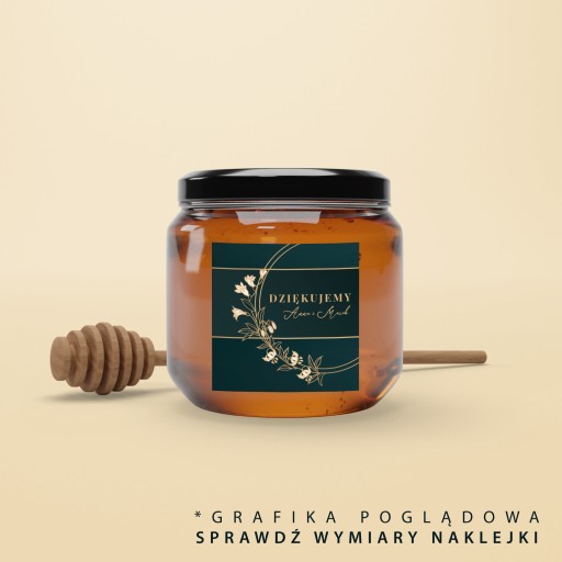 NAKLEJKI ETYKIETY PERSONALIZOWANE NA PODZIĘKOWANIA, MIODY, CIASTO - folia matowa