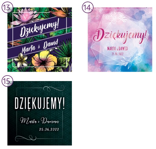 - Teksty na etykietach są personalizowane - również zmiana napisu "dziękujemy" na inny - prosimy o dane w wiadomości do sprzedającego lub na e-mail.