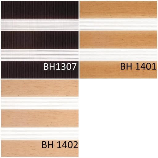 - Tkaniny rolet, są wykonane w 100% z poliestru, wyjątkiem są materiały BH 08, BH 1401, BH1402, BH1405, BH1406, które mają dodatek lnu.