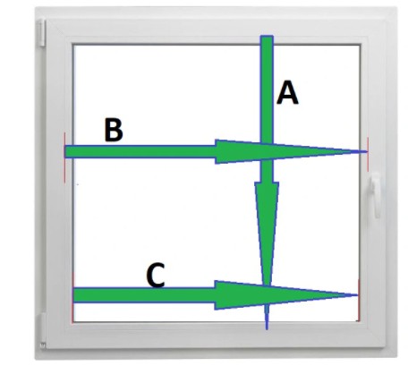 - rozmiaru rolet (potrzebujemy 3 wymiary : A wysokość , B szerokość szyby z listwami, C szerokość szyby bez uszczelki).