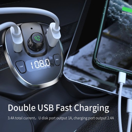 Transmiter FM Bluetooth 5.0 ESSAGER Ładowarka 5V/3.4A Odtwarzacz audio