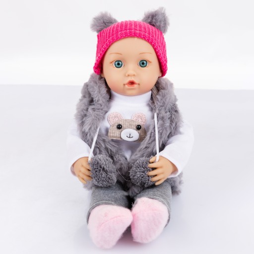 Lalka ma wesołą, słodką minkę i duże oczka z pogodną buźką, wygląda jak prawdziwe dziecko. Bobas jest ubrany w mięciutkie ubranko.