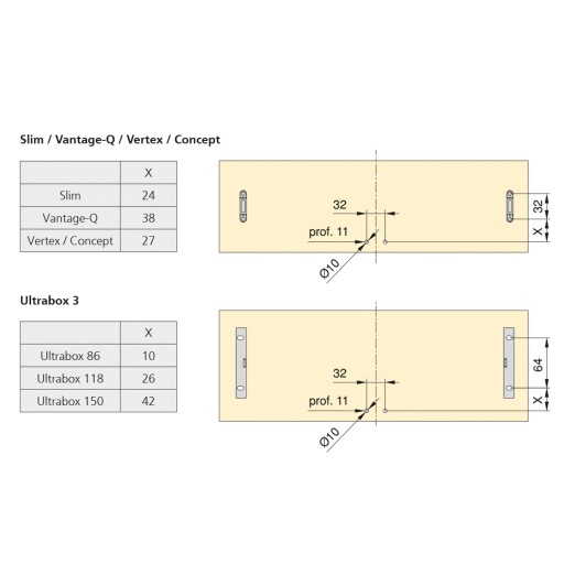 Lokbox służy do mocowania i stabilizacji dna szuflady do jej frontu. Produkt pasuje do wszystkich szuflad. Polecany jest w szczególności do szuflad szerokich. Łatwy montaż - dzięki zastosowaniu kołków rozporowych dopasowujących się do krawędzi szuflady.