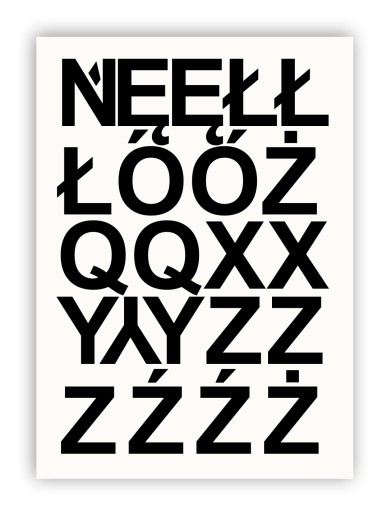- po 2 sztuki z każdej litery alfabetu polskiego( Ą, Ę, Ć, Ś, Ó, Ź, Ż)