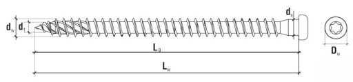 WKLC – Wkręty do łączników ciesielskich z łbem walcowym i gniazdem TX - stosowane do mocowania trójwymiarowych łączników ciesielskich do podłoży drewnianych - średnica Ø 5mm