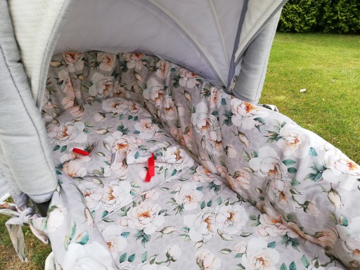 - Tył materacyka posiada kieszeń mocująca materac o zagłówek do gondoli