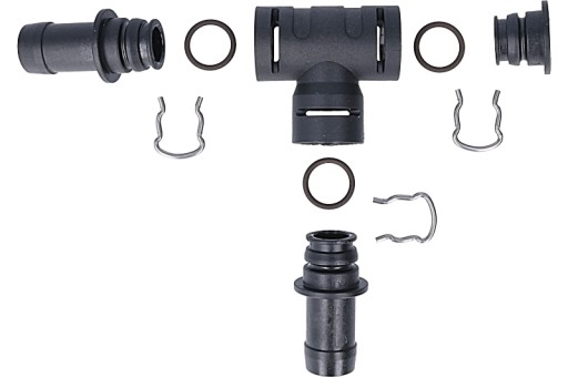 Zestaw adaptera do wtryskiwacza LPGTech Yeti umożliwia zmontowanie łącznika na wąż średnicy 12 mm w literę "T" oraz kolano zamykające "L".