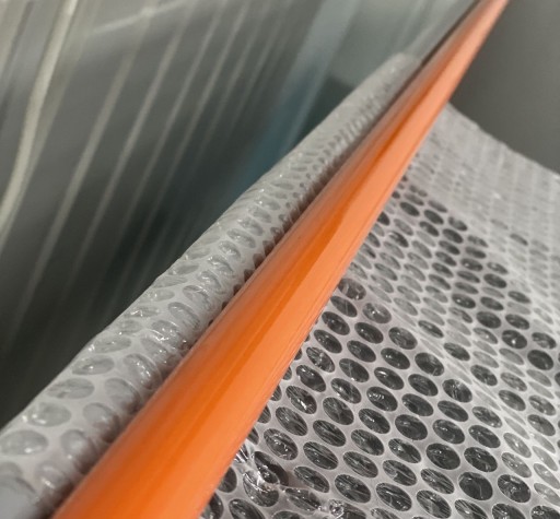 Stoły i stojaki wykonane są z profili stalowych, które zostały trwale zabezpieczone za pomocą lakierowania proszkowego, krawędzie profili wypełnione są zatyczkami PVC.