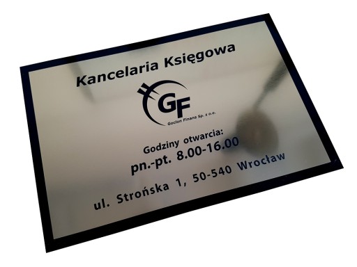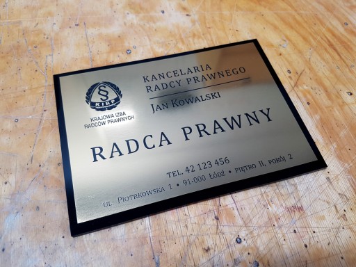 Wykonana z laminatu grawerskiego w kolorze szczotkowanego złota lub srebra. Estetyka i precyzja uzyskane techniką laserową pozwoli wyróżnić się Państwa firmie.