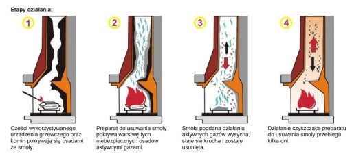 Efektywny środek do usuwania smoły Hansa składa się z mieszanki specjalnych kryształów. Jedne ich składniki katalizują proces spalania drewna, a drugie w wysokiej temperaturze wydzielają gaz, który reaguje z osadem ze smoły i rozkłada jego strukturę. Skutecznie czyści: