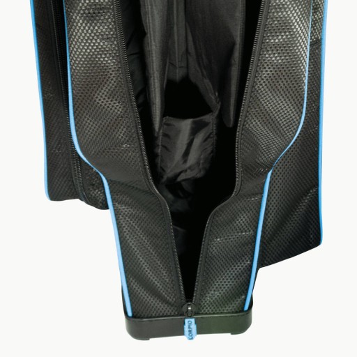 Dzięki specjalnie zaprojektowanej wewnętrznej przegrodzie pokrowiec mieści 3 uzbrojone wędki z kołowrotkami, zachowując szerokość standardowego pokrowca na 2 wędki. Wewnętrzne piankowe przegrody oraz rzepy chronią nie tylko wędki i kołowrotki, ale i żyłkę oraz zestaw ze spławikiem lub koszyczkiem zanętowym. Pokrowiec dodatkowo posiada dwie zewnętrzne komory na akcesoria. Twarde, łatwe do wyczyszczenia dno chroni przed wilgocią, gdy stawiasz pokrowiec pionowo.