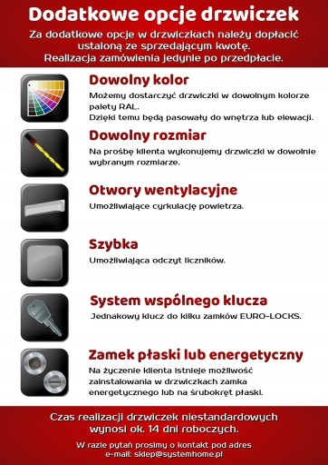 Po zakupie prosimy o podanie w e-mailu, które drzwiczki mamy wysłać (z zamkiem czy z uchwytem)!