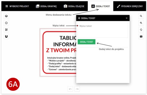 - “Dodawanie tekstu” – (grafika nr 6A oraz nr 6B): dodawaj i edytuj tekst.