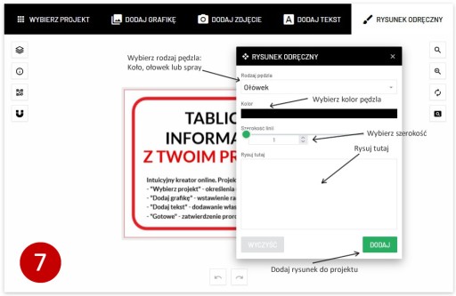 - “Dodaj grafikę” – (grafika nr 4): dodaj ramkę, znaki lub inne grafiki z naszych zasobów .