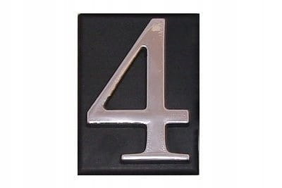 Cyfra "4" samoprzylepna na tabliczce z tworzywa. Wysokość 4,5 cm, chrom, folia.
