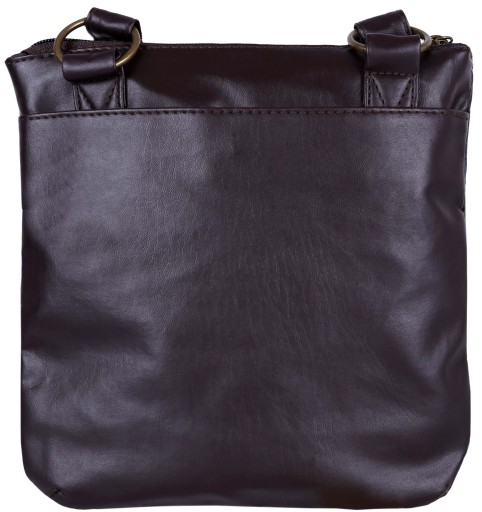 Ciemnobrązowa torebka, zapinana na zamek.