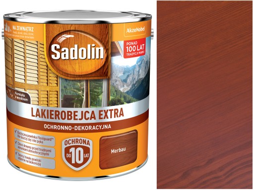 - W celu osiągnięcia ochrony 10 lat należy zastosować wstępnie impregnat techniczny marki Sadolin oraz nałożyć 2 lub 3 warstwy Sadolin Lakierobejcy Extra Ochronno-Dekoracyjna.