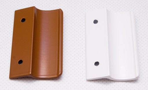 Opis: uchwyt wykonany jest z aluminium polakierowanego na kolor złoty dąb. Wykonany jest bardzo estetycznie, dzięki czemu po zamontowaniu komponuje się praktycznie z każdym oknem balkonowym. Uchwyt wyposażony jest w dwa otwory na wkręty montażowe fi 4 mm. Montaż polega na przykręceniu uchwytu do ramy drzwi lub okna za pomocą dwóch wkrętów. Uchwyt może być zamontowany w pionie jak i w poziomie.
