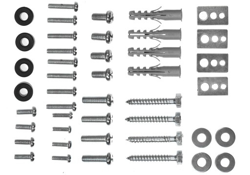 ✅ Zestaw zawiera wszystkie niezbędne śruby, podkładki dystansowe oraz kołki montażowe, które umożliwiają umocowanie go do ściany.
