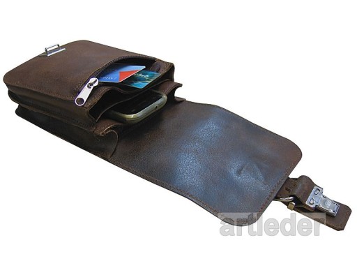 Zamykana na klapę i zamek zatrzaskowy tik-tak mocowany po klamrą rymarską. Posiada dwie komory: jedna o szerokości 2 cm i druga o szerokości 4 cm. Na przedniej komorze znajduje się płaska kieszonka zamykana na zamek błyskawiczny. Wewnątrz przedniej komory jest przegródka na telefon o wymiarach do 16.5 x 9 x 1 cm. W szerokiej komorze znajduje się kieszeń zamykana na zamek błyskawiczny. Saszetka / torba może być noszona na pasku od spodni lub po przypięciu paska na ramieniu. Może być również noszona przy pasku od spodni na tzw. bojówkach. Pasek na ramię ma długość 140 cm , posiada regulację. Przypinany jest karabinkami do pół kółek mocowanych na tyle saszetki / torby. Wysokość szlufki na pasek w "świetle otworu": 5,0 cm.