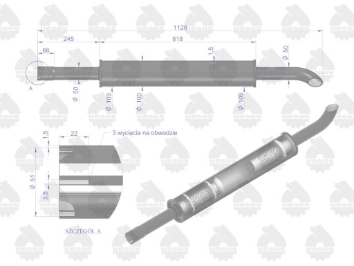 Tłumik 1128mm 3029104M1 4.8kg MF3 C-3603P EMALIA ORYGINAŁ URSUS