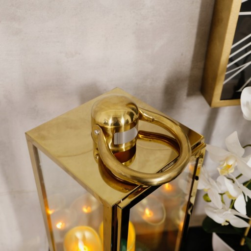 LAMPION OGRODOWY LATARNIA ZE STALI NIERDZEWNEJ DUŻA ZŁOTA METALOWA XL