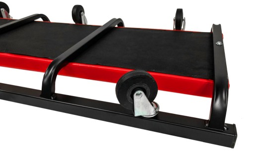 Metalowa konstrukcja leżanki warsztatowej sprawia, że jest ona niezastąpionym elementem wyposażenia warsztatów samochodowych. Konstrukcja leżanki warsztatowej opiera się na 6 gumowych kołach podporowych umożliwiających przemieszczanie się w dowolnym kierunku.