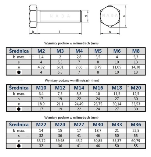- Norma: DIN 933 / ISO 4017/ PN 82105